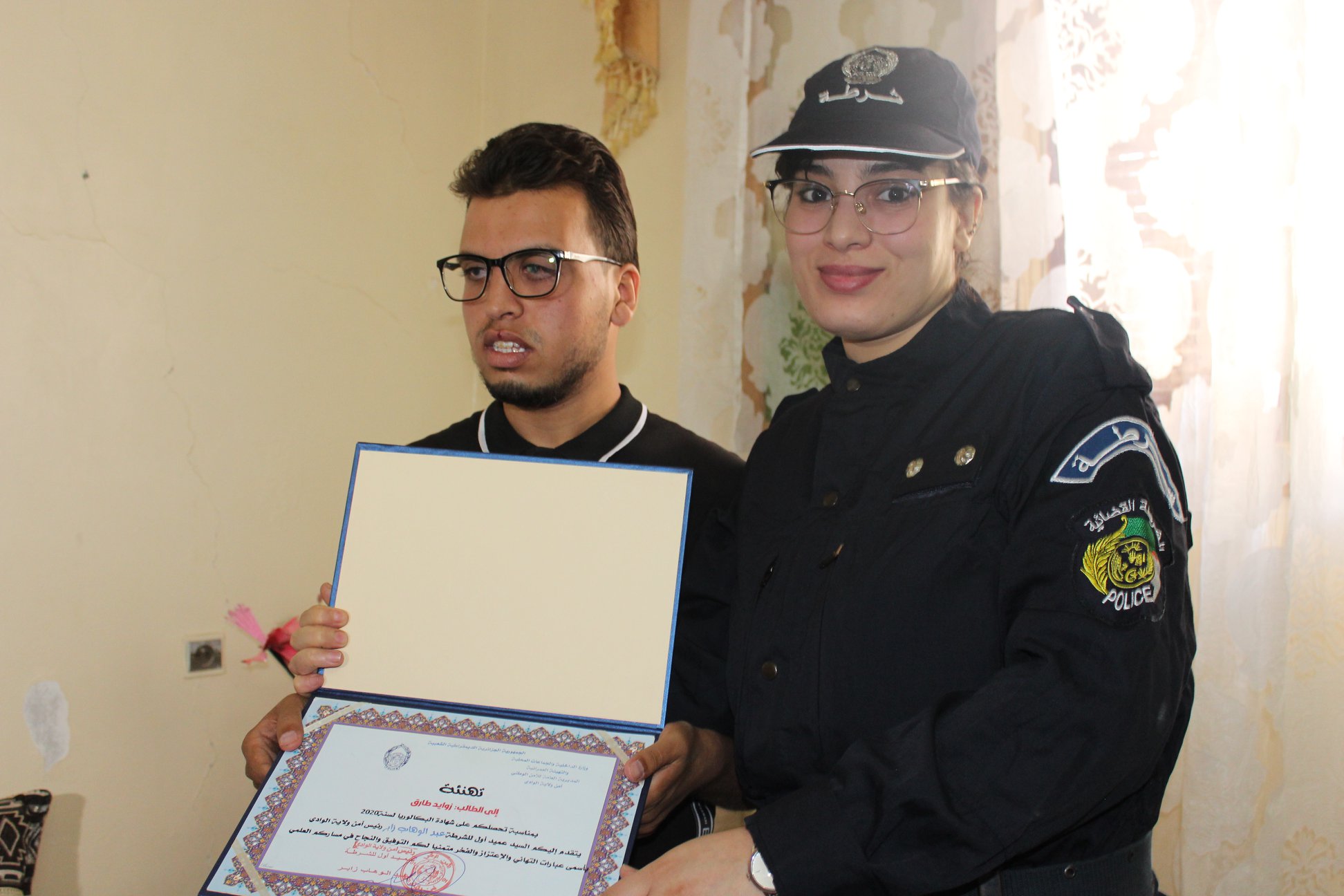نظم أيضا أمن ولاية الوادي زيارة لبيت الطالب زوايد طارق الذي تحدى كل الصعوبات ورفع التحدي لكونه من ذوي الاحتياجات الخاصة وفقدانه التام البصر إلا أنه تمكن من افتكاك النجاح في شهادة البكالوريا بمعدل يقارب 11 أين حظي هو الآخر بتكريم خاص ببيته وسط عائلته وأسرته التي أبدت هي الأخرى استحسان هذه المبادرة التي رسمت أثر إيجابي عميق في داخل الطالب طارق.